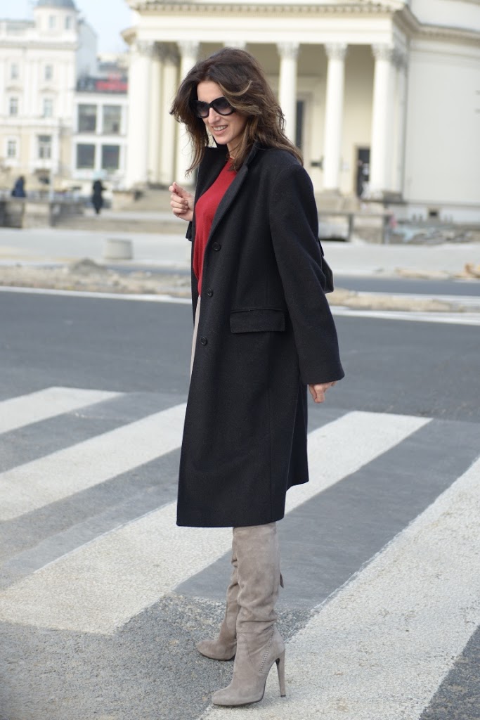 Połączenie takiej długości spódnicy z kozakami jest moim ulubionym:-)