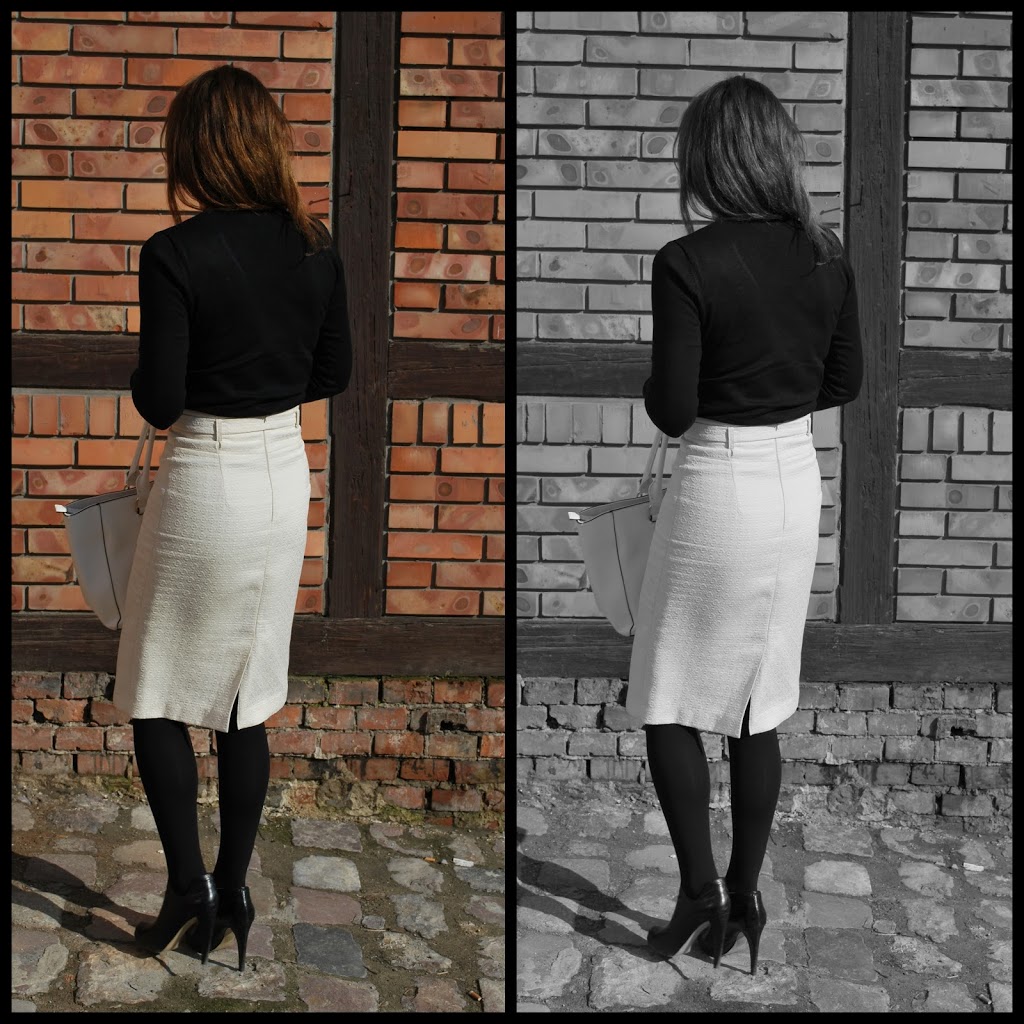 Zawsze lubiłam biało-czarne zestawy, zwłaszcza w wersji negatyw (biały dół, czarna góra) i moja miłość się nie skończy.