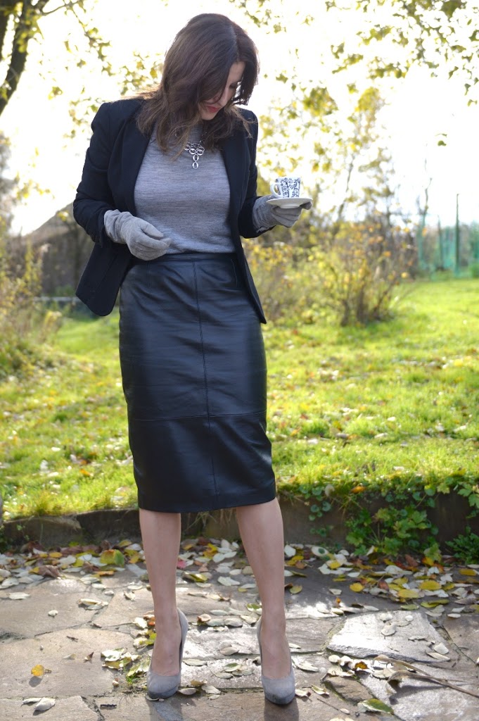 Świetnie wyglądasz, niby prosto, klasycznie, jednak ta skórzana spódnica, super przełamuje tą klasykę 🙂