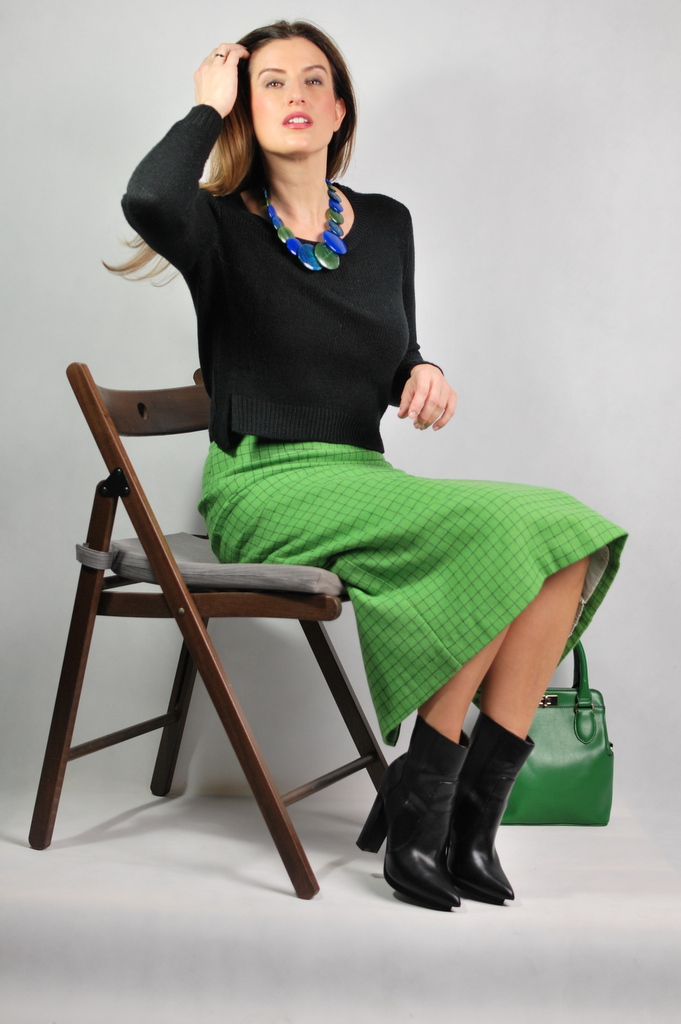 Rzeczywiście to trudna długość i na pewno nie dla mnie, bo jestem niska :/ W takiej spódniczce widzę osobę wysoką. Soczysta zieleń jest przepiękna, od razu przypomina mi się wiosna 🙂 hehe Uważam, że lepiej prezentuje się ze szpilkami, bo botki przy tej długości spódnicy, zdecydowanie skracają nogi. Gorąco pozdrawiam i zapraszam do mnie 🙂