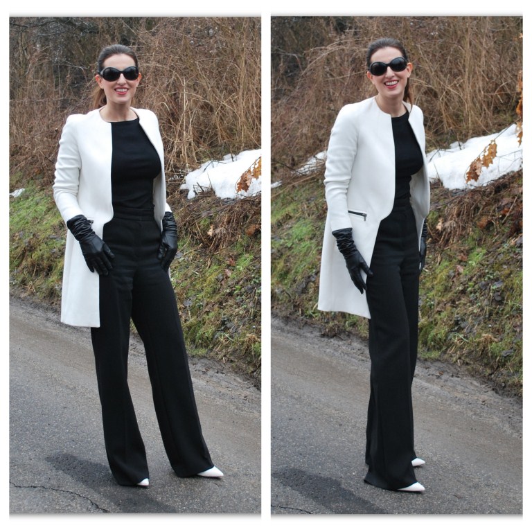 płaszcz, rękawiczki – ZARA / spodnie – Aryton / buty – MANGO / okulary – D&G