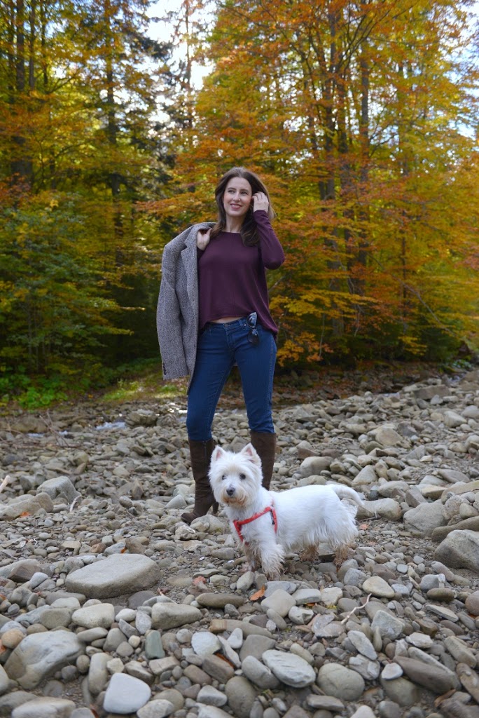 Fantastyczny pomysł, taki luzacki, bo męskie marynary są okropnie szerokie w barach ,ale teraz jest taki trend -duże ramiona , więc wstrzeliłaś się w sam raz. Wyglądasz świetnie i piesio też. 🙂