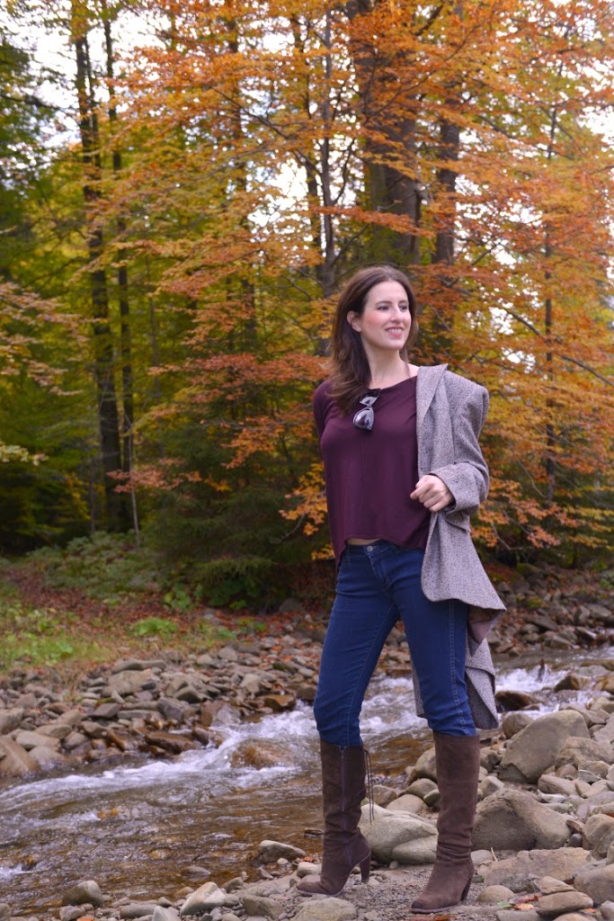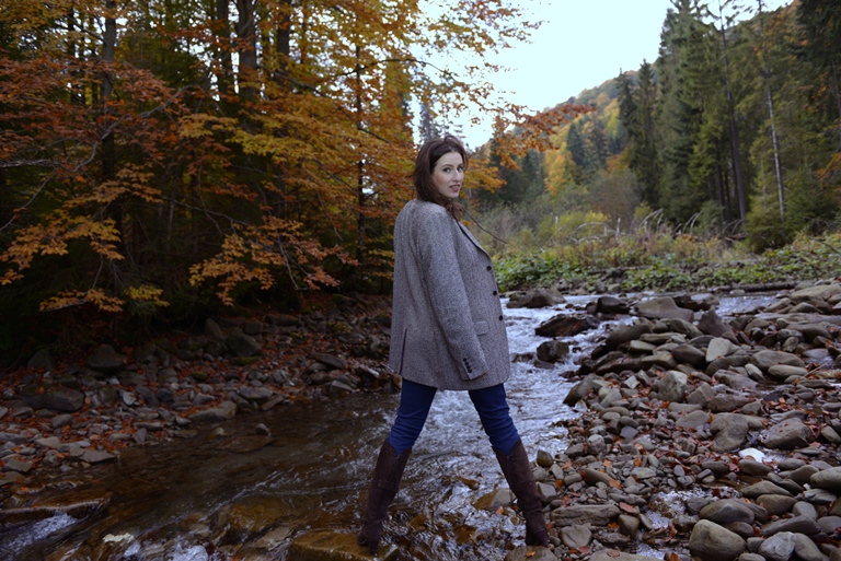 Dotychczas pokazywałam Wam męską koszulę w damskim wydaniu, a tym razem pożyczyłam od mojego męża marynarkę. Jesienną, tweedową. Dla mnie – jak płaszczyk.