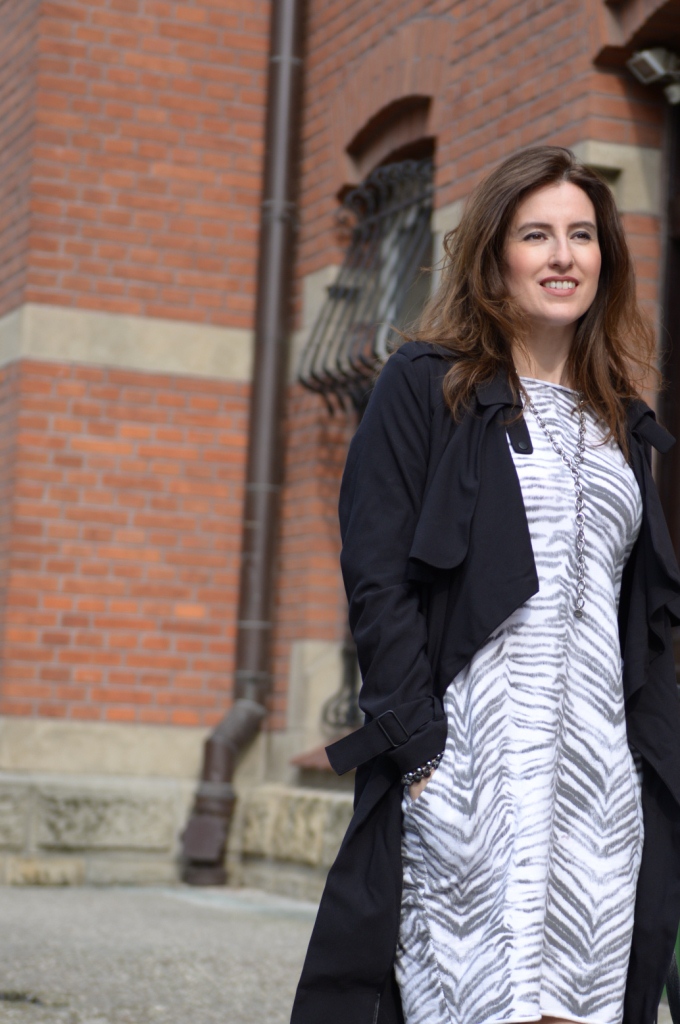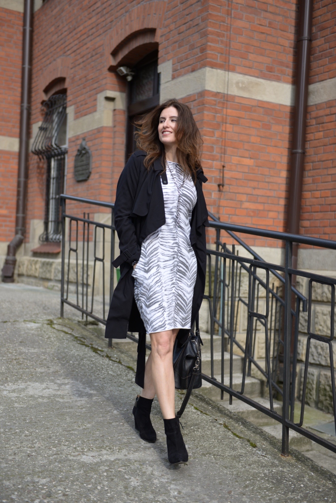 Stylowo i na luzie! Podoba mi się, ze zestawiłaś tę sukienkę nieco nonszalancko z botkami i prochowcem. Bardzo lubię sukienki z kieszeniami, wiec na pewno bym z nich nie zrezygnowała.