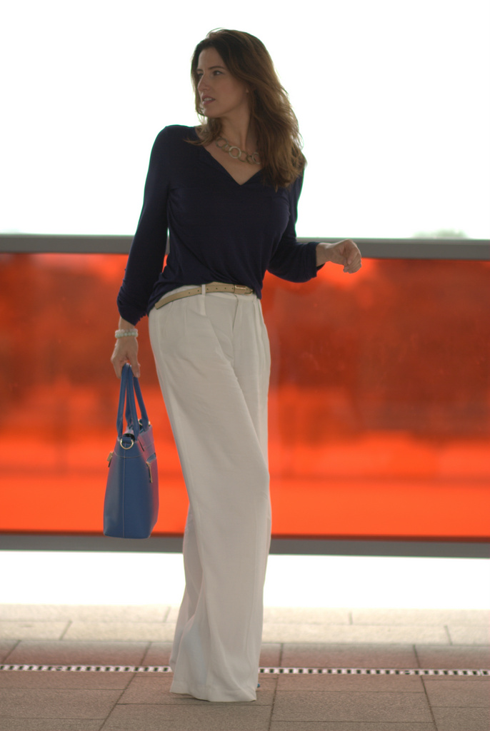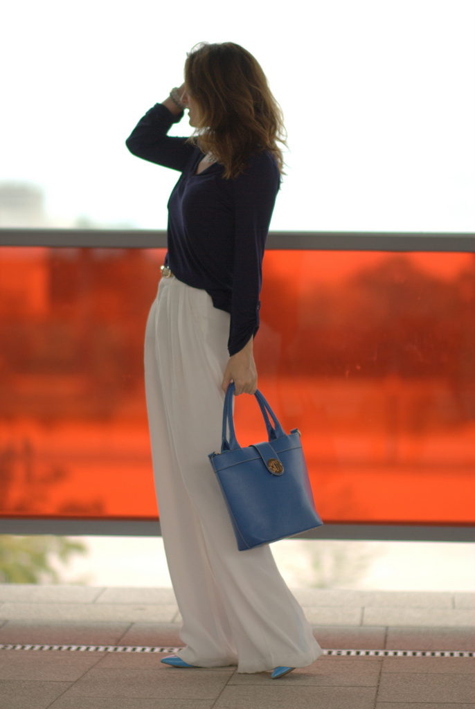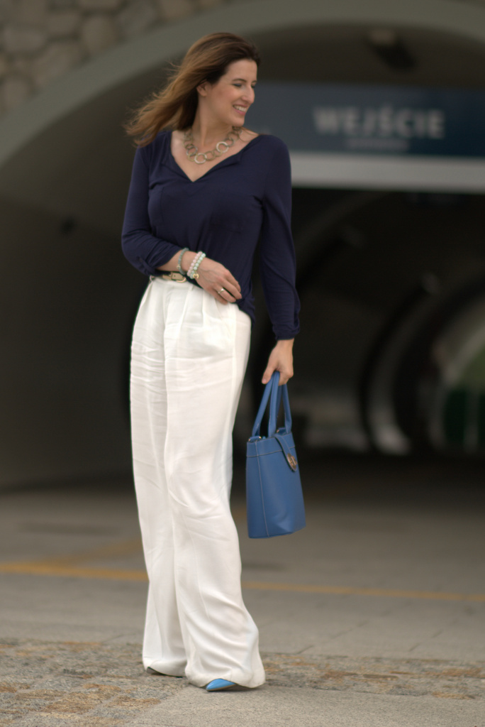 Malgosiu! Spodnie sa cudowne, kojarza mi sie z latem w miescie, powiewne i eleganckie. Stanowia idealna baze do roznych stylizacji. Swietnie dobralas do nich reszte stroju w niebiesko-granatowej kolorystyce:) Wygladasz jak zwykle, czyli swietnie!;)